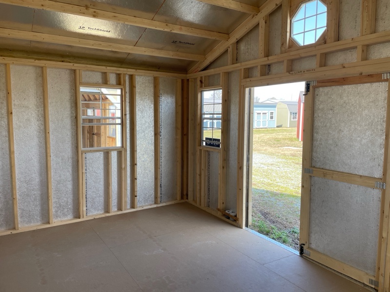 (4) 2×3 Window, Octagonal Window, 7' Tall Walls, Tech Shield on Roof and Walls, Painted Trim, T&G Flooring